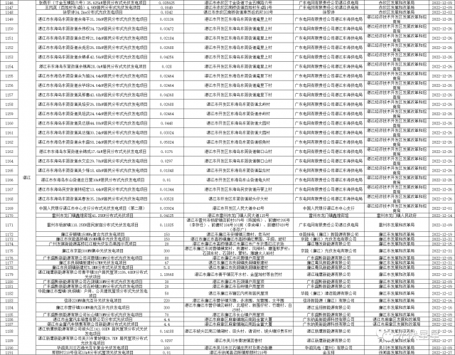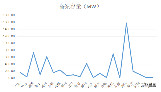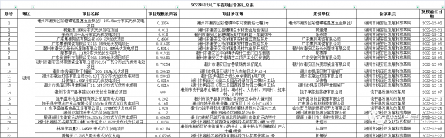 據(jù)廣東省投資備案平臺上統(tǒng)計,2022年12月廣東省光伏項目備案1381個,總?cè)萘考s5.3GW。其中地面光伏項目19個,總?cè)萘繛?720MW,其中湛江占5個,總?cè)萘?220MW,陽江、清遠(yuǎn)、潮州皆超600MW,最大容量地面光伏項目為潮州項目600MW。