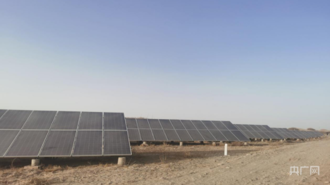 走進位于新疆墨玉縣喀瓦克鄉(xiāng)乃再爾巴格村附近的光伏發(fā)電站,入眼皆是的沙土地上排列整齊的光伏電池板組成的發(fā)電單元。一塊塊光伏電池板“匍匐”在塔克拉瑪干沙漠的邊緣,通過光能發(fā)電讓更多的群眾取得“陽光收益”。