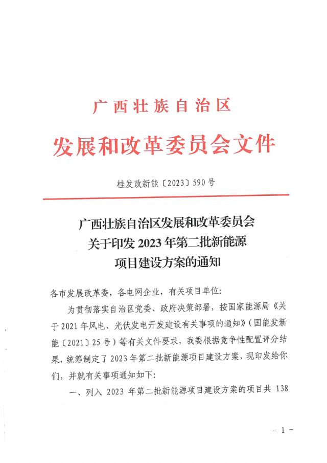 近日,廣西壯族自治區(qū)發(fā)展和改革委員會(huì)印發(fā)2023年第二批新能源項(xiàng)目建設(shè)方案的通知。