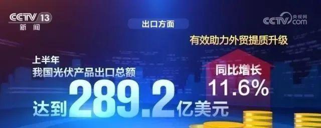 出口方面,上半年,我國光伏產(chǎn)品出口總額達(dá)到289.2億美元,同比增長11.6%,有效助力外貿(mào)提質(zhì)升級。