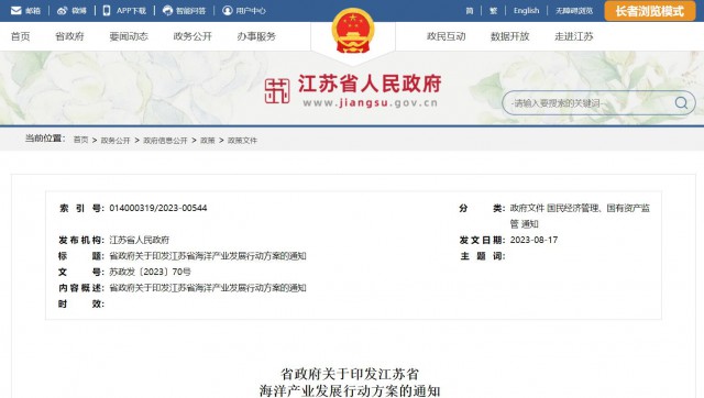 省政府關于印發(fā)江蘇省海洋產(chǎn)業(yè)發(fā)展行動方案的通知