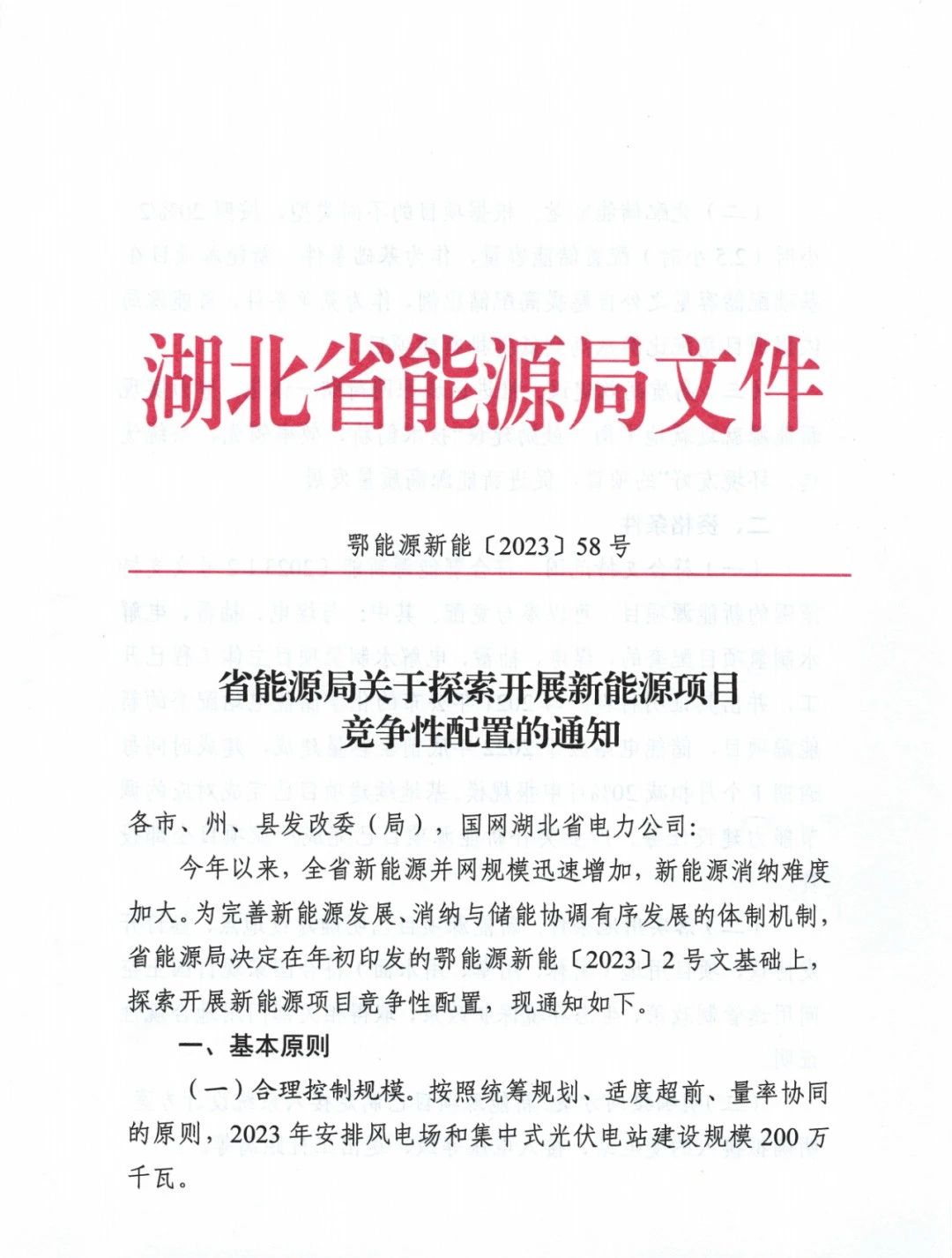 10月23日,湖北省能源局印發(fā)《關(guān)于探索開展新能源項目競爭性配置的通知》,擬安排2GW風、光項目指標,并以儲能配置比例作為競爭優(yōu)選條件。