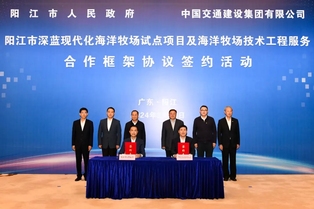 中交集團黨委書記、董事長王彤宙表示,中交集團深入貫徹落實黨的二十大精神,在國家重大戰(zhàn)略領(lǐng)域先行示范,充分發(fā)揮大交通、大城市、國際化、江河湖海領(lǐng)域的獨特優(yōu)勢,在推進中國式現(xiàn)代化上展現(xiàn)中交新?lián)?、新作為。中交集團十分重視陽江市場,深度融入和服務(wù)陽江經(jīng)濟社會發(fā)展,雙方合作取得了一系列務(wù)實成果,希望雙方以此次簽署合作框架協(xié)議為契機,就海洋牧場試點項目開展更深層次合作,加快推動項目落地,為廣東發(fā)展海洋牧場、打造“藍色糧倉”邁出更加堅實步伐。中交集團將進一步發(fā)揮自身優(yōu)勢,推動雙方在基礎(chǔ)設(shè)施建設(shè)、城市更新、現(xiàn)代綜合交通等領(lǐng)域進一步深化合作,助力陽江經(jīng)濟社會高質(zhì)量發(fā)展。