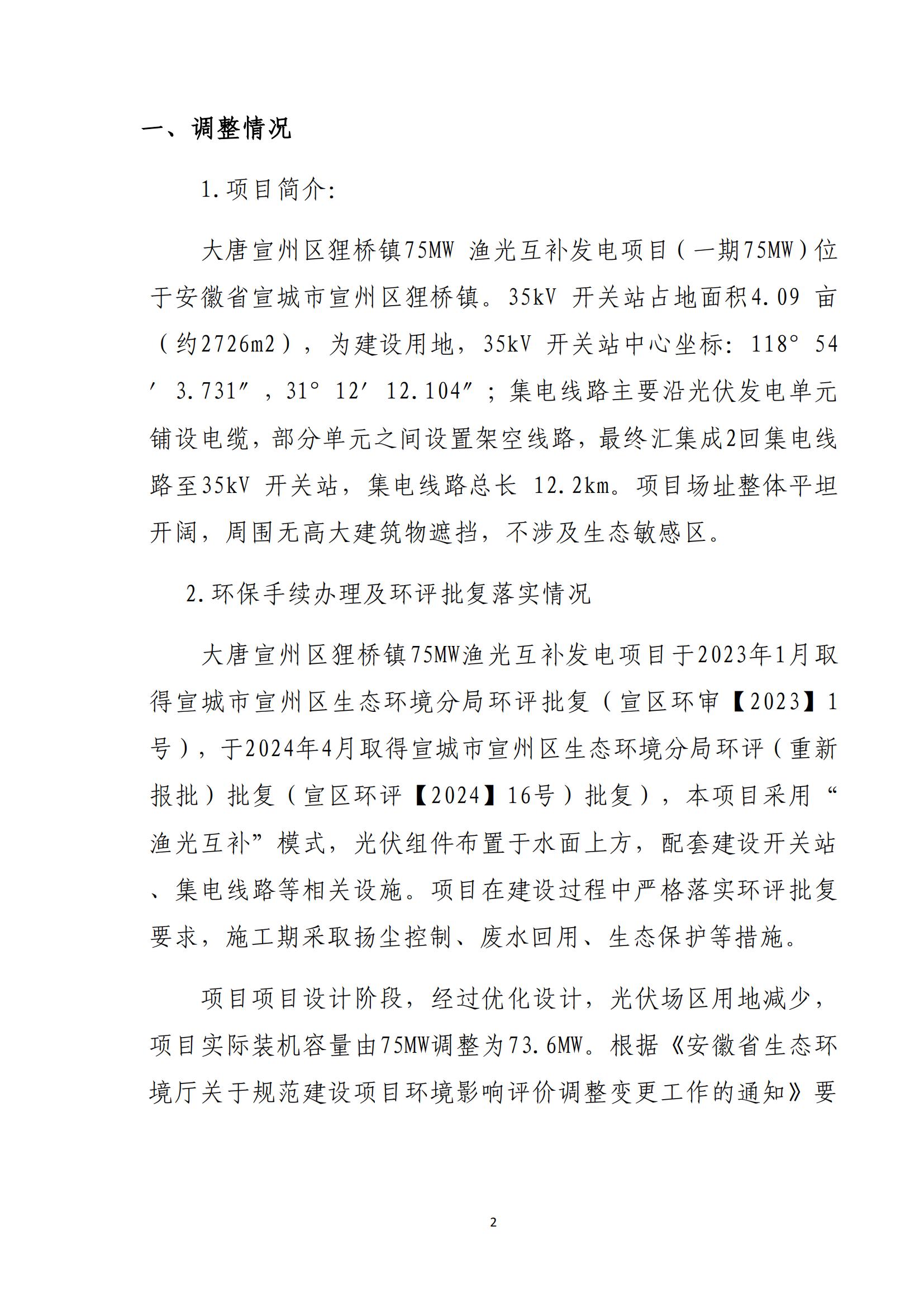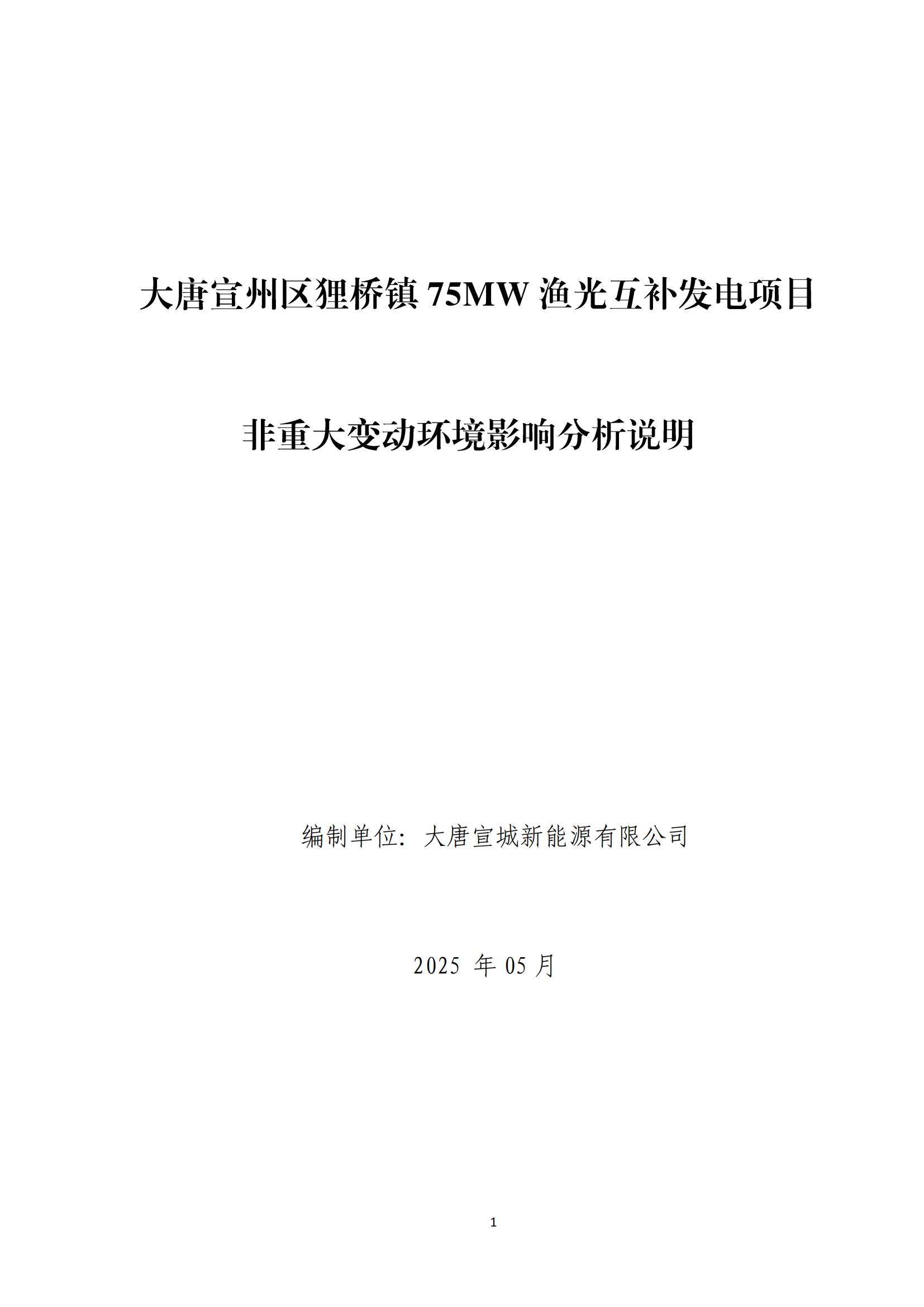 大唐宣州區(qū)貍橋鎮(zhèn)75MW漁光互補(bǔ)發(fā)電項(xiàng)目非重大變動(dòng)環(huán)境影響分析說(shuō)明