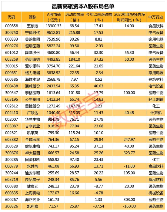 數(shù)據(jù)顯示,截至2020年末,高瓴在美股市場持有95家公司的股票,總市值為125.8億美元(近812億元人民幣),相較于三季度末略有減持。上一季度,高瓴在美股市場持有89家公司的股票,總市值為132億美元。