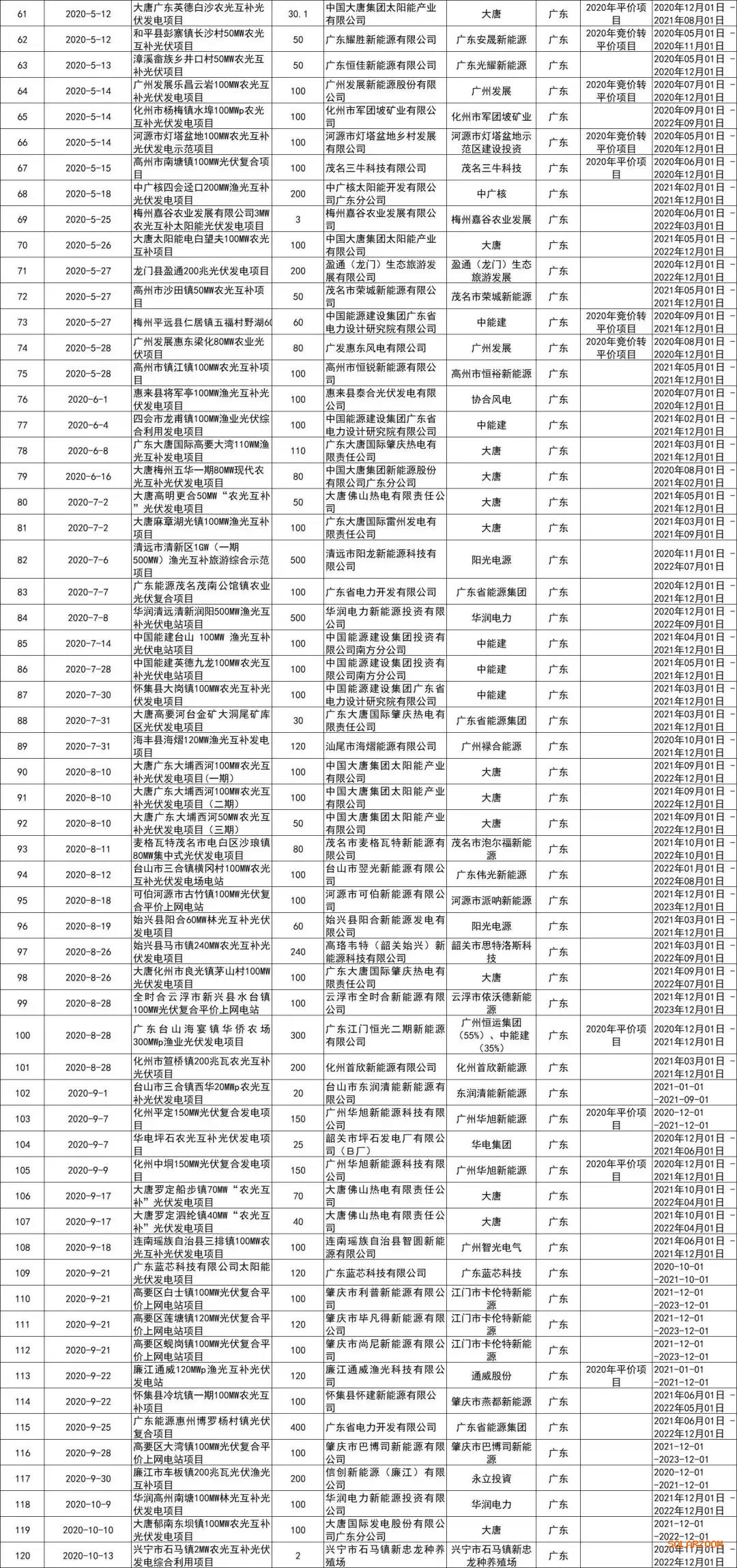 從投資企業(yè)來看,大唐、華潤、中能建、中廣核、華電、中核等為代表的央企團隊、廣東能源集團、廣州恒運集團、廣州發(fā)展組成的地方國企梯隊以及陽光電源、廣東矣量光電等民營企業(yè)組成了廣東省的開發(fā)主力。