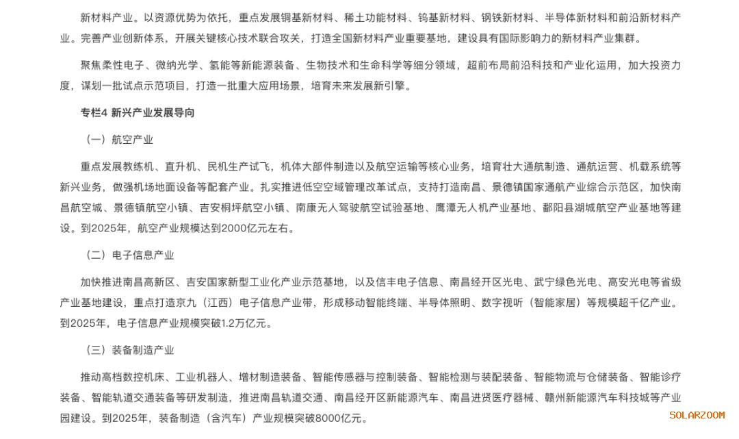 以宜春、新余、上饒、贛州等設(shè)區(qū)市為重點(diǎn),打造贛西、贛東北、贛南三大新能源產(chǎn)業(yè)集聚區(qū)。加快上饒光伏國家新型工業(yè)化示范基地、新余國家硅材料及光伏應(yīng)用產(chǎn)業(yè)化基地、宜春國家鋰電新能源高新技術(shù)產(chǎn)業(yè)化基地等平臺(tái)建設(shè),培育形成若干特色產(chǎn)業(yè)集群。到2025年,新能源產(chǎn)業(yè)規(guī)模達(dá)1700億元左右。