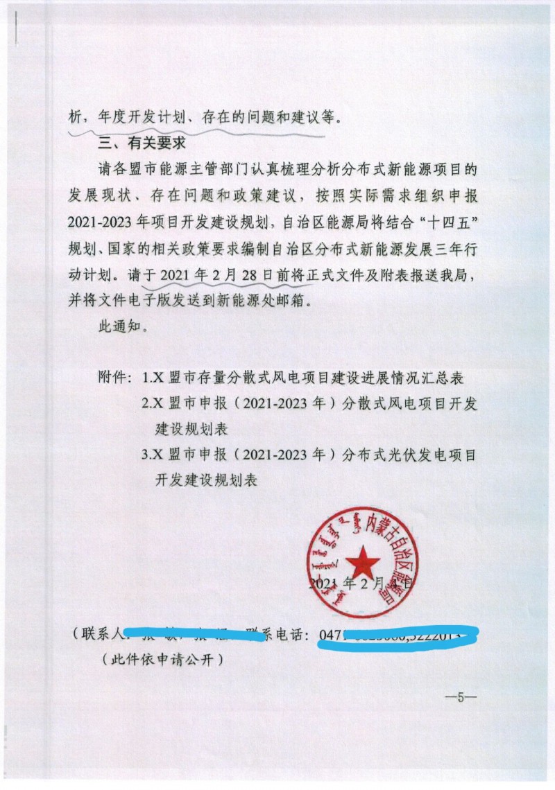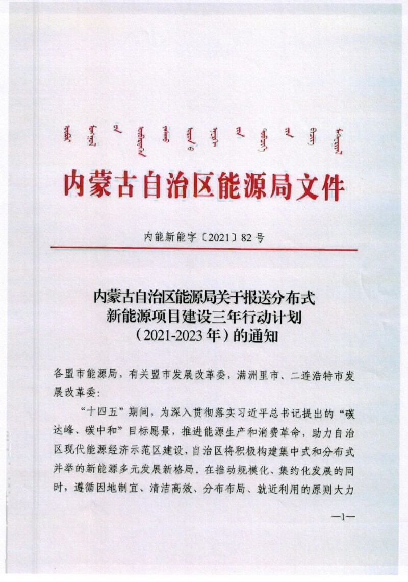 近日,內(nèi)蒙古自治區(qū)能源局發(fā)布關(guān)于報(bào)送《分布式新能源項(xiàng)目建設(shè)三年行動(dòng)計(jì)劃(2021-2023年)》的通知。