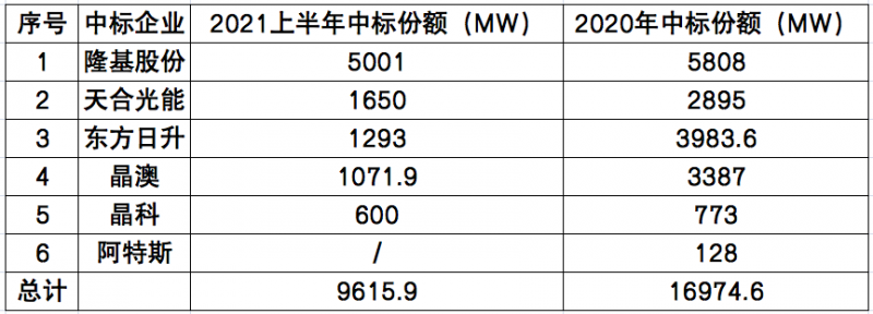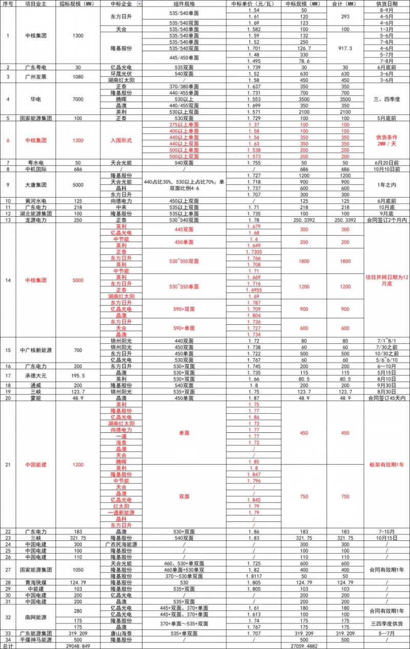 自年初中核集團開啟2021年首次大規(guī)模組件招標(biāo)以來,截止到2021年6月底,國內(nèi)以大唐、華電、中核為代表的電力央企已經(jīng)陸續(xù)完成逾29GW的光伏組件招標(biāo)與定標(biāo)工作。