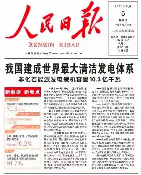 我國清潔低碳化進程不斷加快,水電、風電、光伏、在建核電裝機規(guī)模等多項指標保持世界第一。