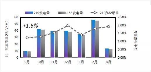 圖2 210/182單面發(fā)電量對(duì)比