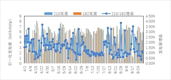 圖4 210/182雙面發(fā)電量增益對(duì)比