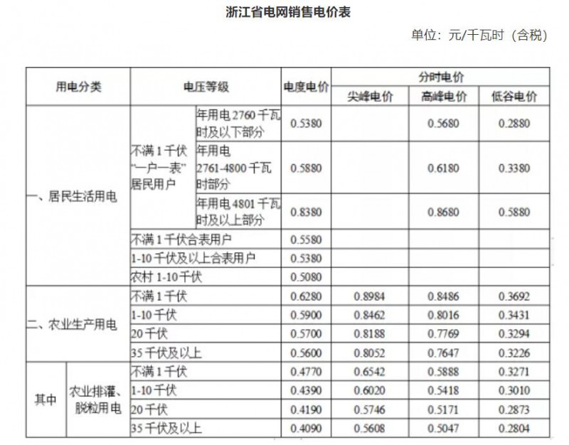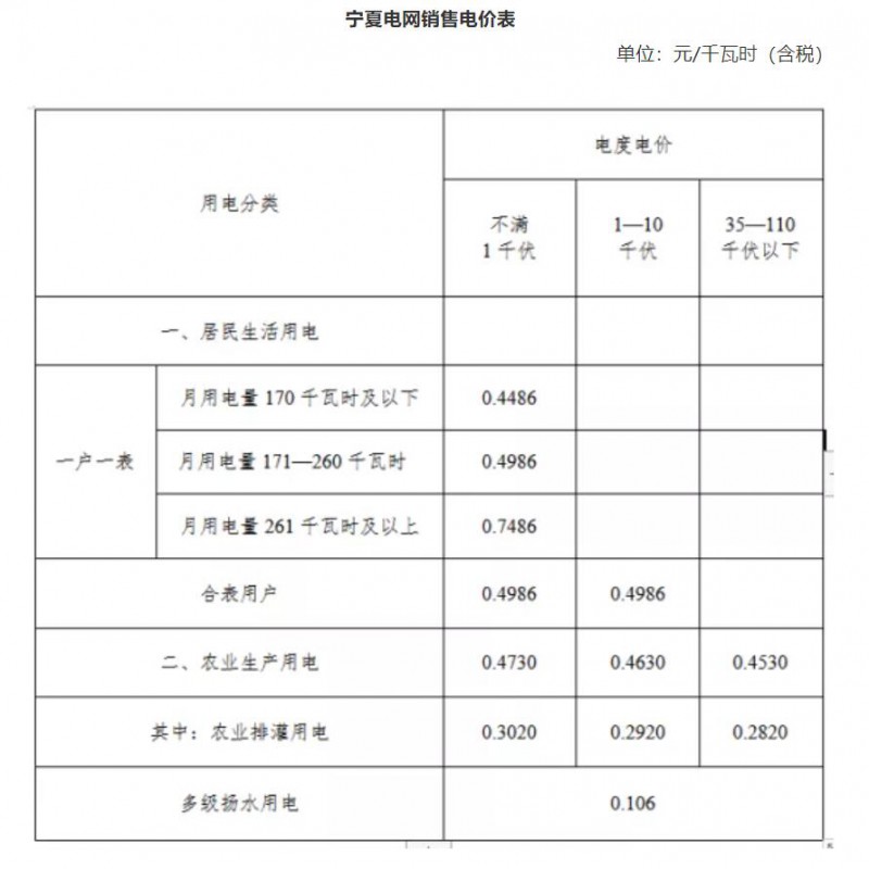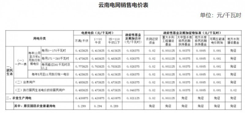 注:上表所列價格,居民生活用電和農業(yè)生產用電價格含國家重大水利工程建設基金0.1125分錢,居民生活用電價格含大中型水庫移民后期扶持基金0.12分錢。