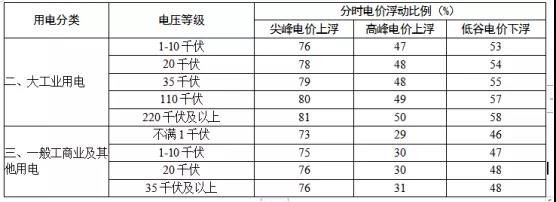 江蘇省工業(yè)用電峰谷分時電價浮動比例表