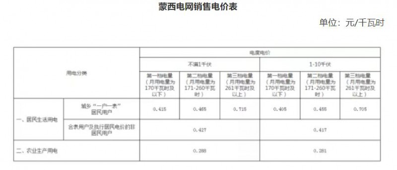 備注:1、農村低壓各類用電按上表合計欄電價執(zhí)行,其中含維管費。2、一戶一表居民生活用電二檔、三檔電價,在一檔電價基礎上每千瓦時分別提高0.05元和0.3元。