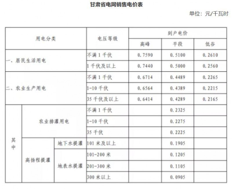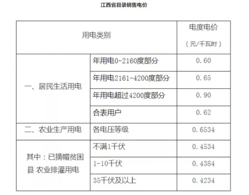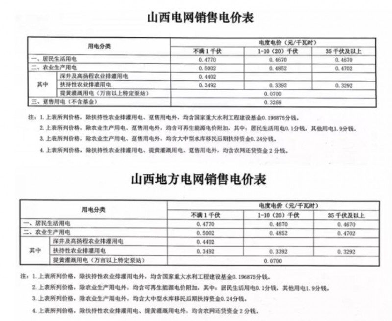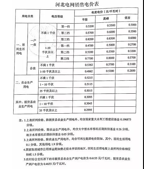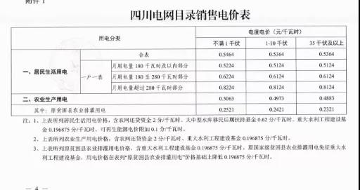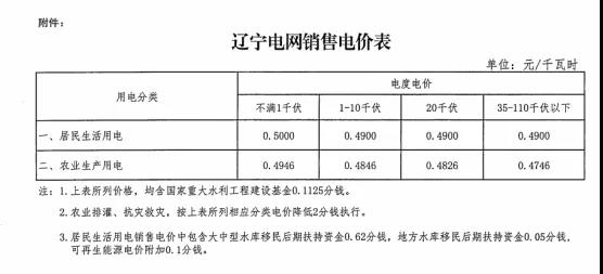 注:1、上表所列價格,除已摘帽貧困縣農業(yè)排灌用電外,均含國家重大水利工程建設基金0.15525分錢。2、上表所列價格,居民生活用電含可再生能源電價附加0.1分錢,含大中型水庫移民后期扶持基金0.62分錢。