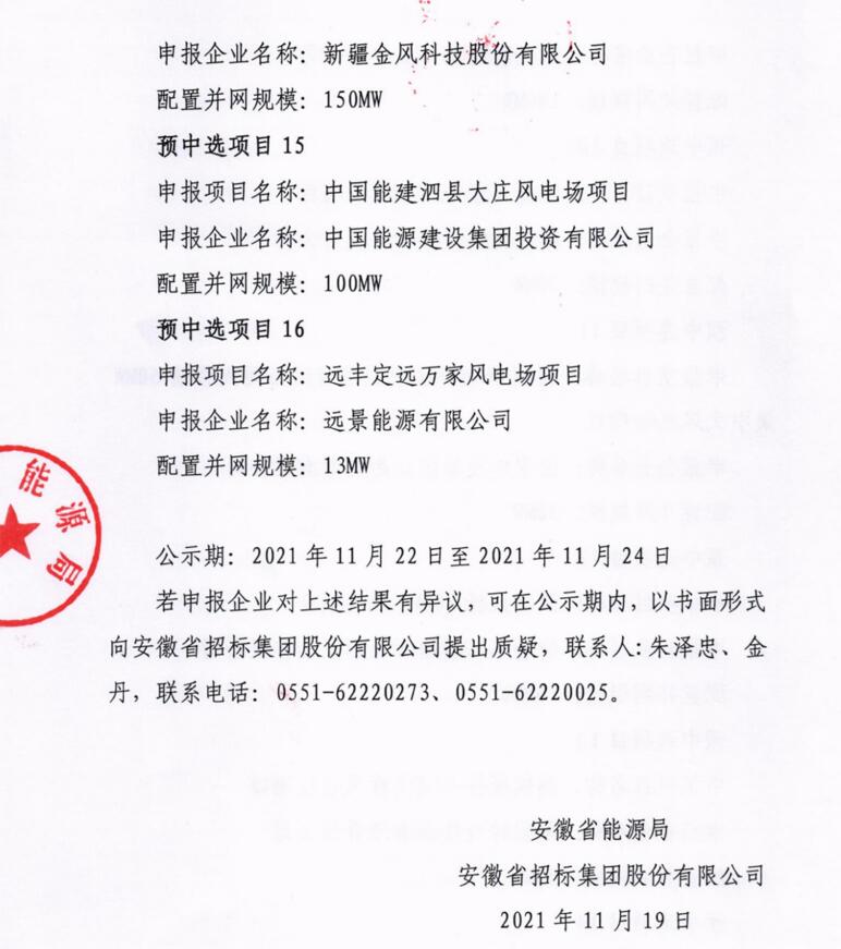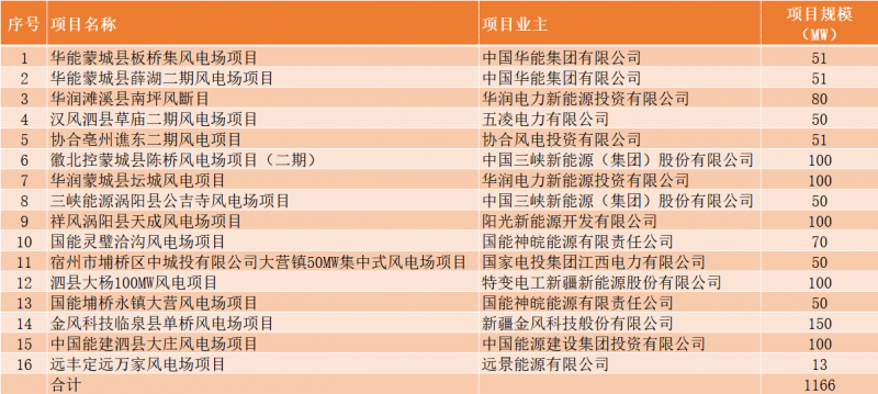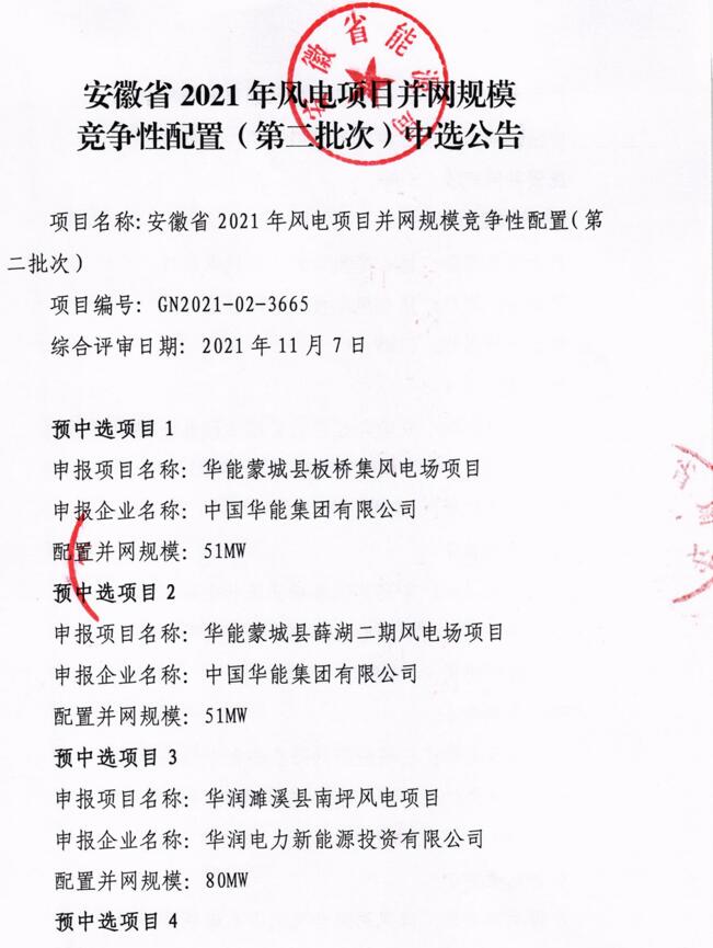 11月19日,安徽省能源局下發(fā)了《安徽省2021年光伏發(fā)電項(xiàng)目競(jìng)爭(zhēng)性配置(第二批次)中選公告》和《安徽省2021年風(fēng)電項(xiàng)目競(jìng)爭(zhēng)性配置(第二批次)中選公告》,其中,光伏30個(gè)項(xiàng)目總規(guī)模為2502MW;風(fēng)電6個(gè)項(xiàng)目總規(guī)模為1166MW。