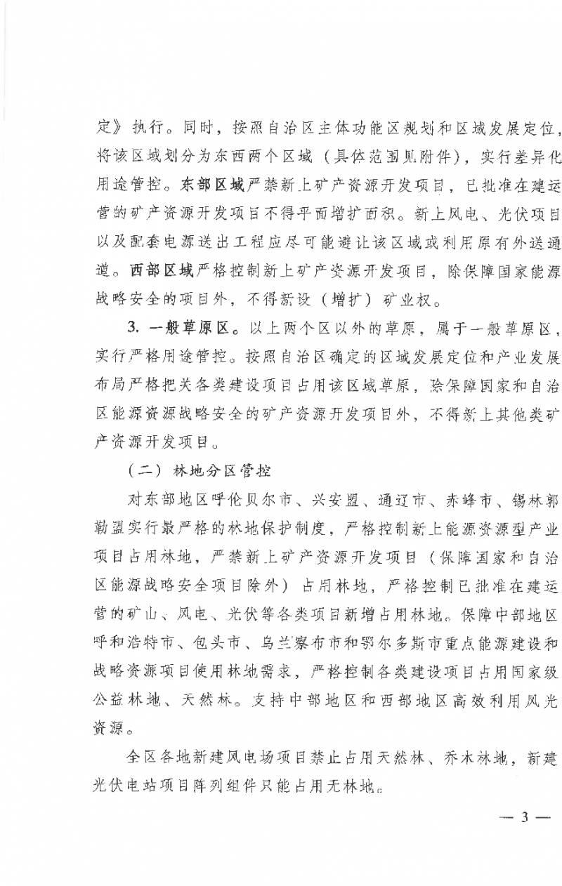 對(duì)東部地區(qū)呼倫貝爾市、興安盟、通遼市、赤峰市、錫林郭勒盟實(shí)行最嚴(yán)格的林地保護(hù)制度,嚴(yán)格控制新上能源資源型產(chǎn)業(yè)項(xiàng)目占用林地,嚴(yán)禁新上礦產(chǎn)資源開(kāi)發(fā)項(xiàng)目(保障國(guó)家和自治區(qū)能源戰(zhàn)略安全項(xiàng)目除外)占用林地,嚴(yán)格控制已批準(zhǔn)在建運(yùn)營(yíng)的礦山、風(fēng)電、光伏等各類項(xiàng)目新增占用林地。
