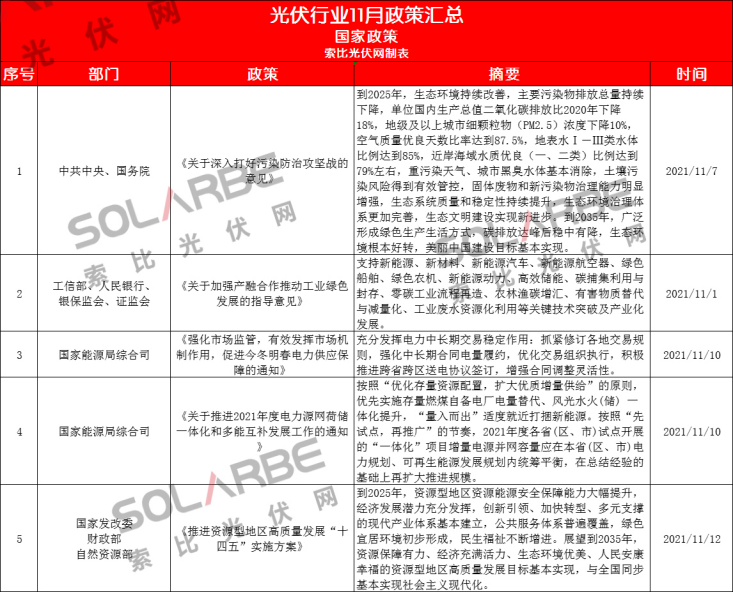 那么,11月份的光伏行業(yè)有哪些政策值得重點(diǎn)關(guān)注呢?下面來看索比光伏網(wǎng)的梳理。