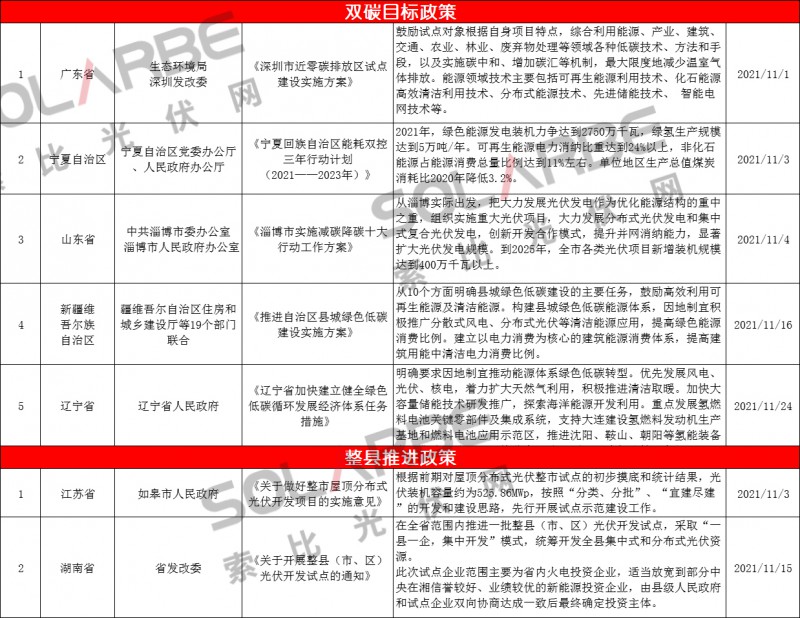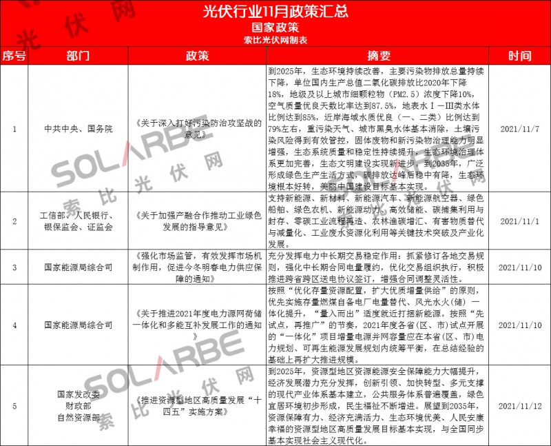 那么,11月份的光伏行業(yè)有哪些政策值得重點(diǎn)關(guān)注呢?下面來(lái)看索比光伏網(wǎng)的梳理。