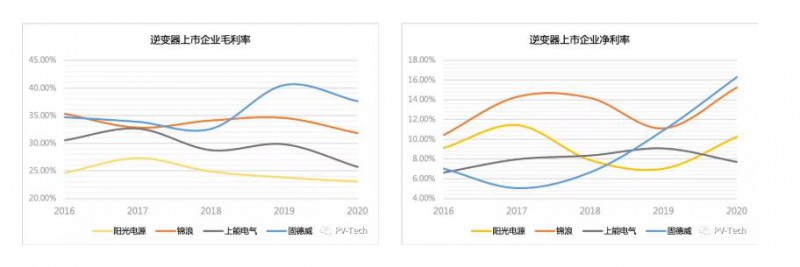 此外,從近幾年國內(nèi)主要逆變器廠商的毛利率來看,主營小功率(組串式、微型)逆變器的錦浪、固德威,其毛利率相對要高于以大功率(集中式)逆變器為主的陽光電源、上能電氣。因此,若未來小功率逆變器出貨比例持續(xù)提升,或有助于帶動深耕戶用市場的逆變器企業(yè)綜合盈利能力進一步提升。