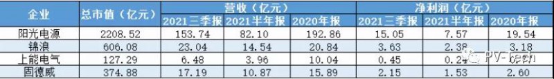 另外,從2021年的半年報和三季報財務數(shù)據(jù)來看,陽光電源、錦浪、固德威等主要的國內(nèi)逆變器上市企業(yè)在營收、凈利潤等方面都取得了較為強勁的增長。
