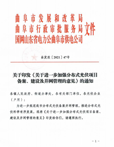 關于進一步加強分布式光伏項目備案、建設 及并網管理的意見