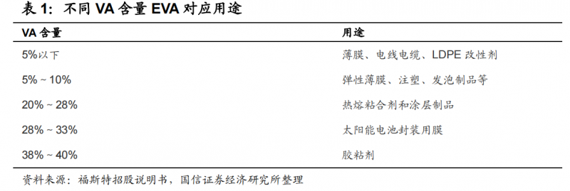 具體來看,EVA是一種應(yīng)用場景很廣的化學(xué)原料,根據(jù)醋酸乙烯脂(VA)含量的不同,EVA所應(yīng)用的場景也顯著差異。