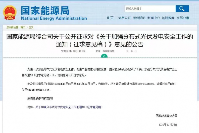 2021年11月26日,國家能源局發(fā)布了關(guān)于公開征求對《關(guān)于加強(qiáng)分布式光伏發(fā)電安全工作的通知(征求意見稿)》意見的公告。其中,在“項(xiàng)目設(shè)計(jì)管理”相關(guān)章節(jié)中明確要求:安裝電弧故障斷路器或采用具有相應(yīng)功能的組件,實(shí)現(xiàn)電弧智能檢測和快速切斷功能;光伏組件應(yīng)具有安全關(guān)斷保護(hù)功能,保證逆變器關(guān)機(jī),交流斷電后,系統(tǒng)子陣外直流電壓低于安全電壓。