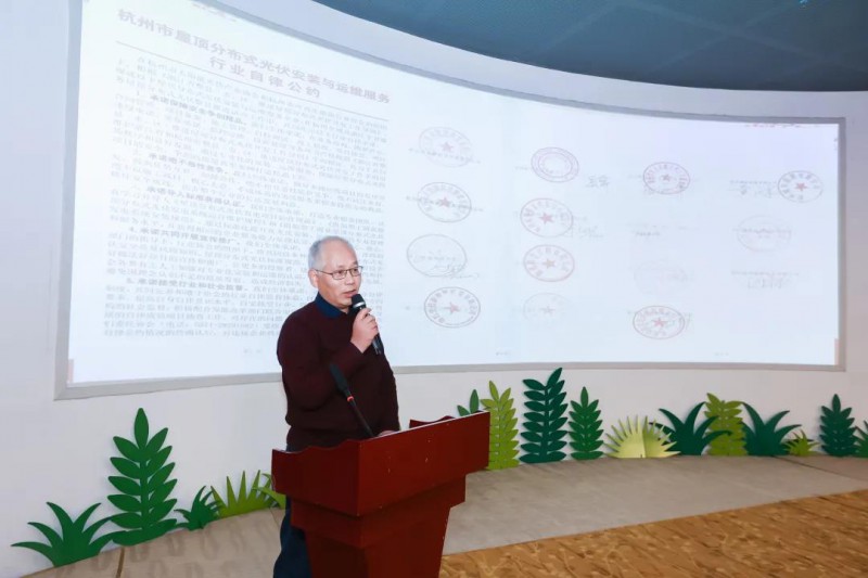 2022年1月18日,全國首個整縣推進(jìn)模式下的行業(yè)自律公約《杭州市屋頂分布式光伏安裝與運(yùn)維服務(wù)行業(yè)自律公約》,由協(xié)會副會長、標(biāo)技委副主任郭衛(wèi)東在杭州低碳科技館召開的“一心一意助力零碳 共創(chuàng)共享前行攻關(guān)”主題論壇上正式發(fā)布。