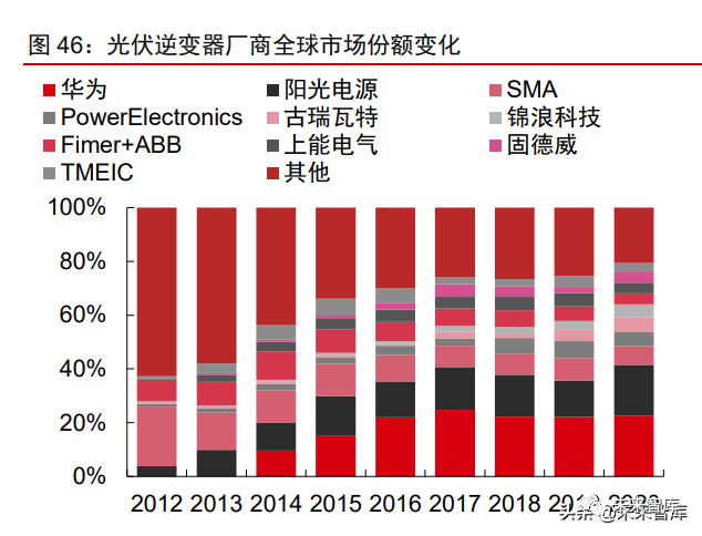 受益于光伏建筑市場擴大+安全高效要求提升,組件級控制有望成為下一代逆變器主 流方向。受戶用等屋頂分布式裝機占比提升驅動,以微型逆變器為代表的組件級電力電子 變換產品接受度不斷提高,且相關強制措施有望進一步推進微型逆變器市場增長。美國國 家防火協(xié)會 2017 年在 NEC 規(guī)范中強制性要求光伏建筑發(fā)電系統(tǒng)達到組件級關斷的要求, 推動美國分布式市場 MLPE 產品滲透率達 70%以上,另有德國、澳大利亞等多個國家逐 步立法推進光伏建筑的組件級關斷要求,而國內“整縣推進”、BIPV 等光伏項目快速落地 也提高了光伏系統(tǒng)的安全要求的必要性,相關安全標準呼之欲出。隨著政府、行業(yè)組織及 戶主對安全性重視程度加深,行業(yè)正在由組串式逆變器向組件級別控制的逆變器轉變,組 件級控制有望成為下一代逆變器的主流方向之一。