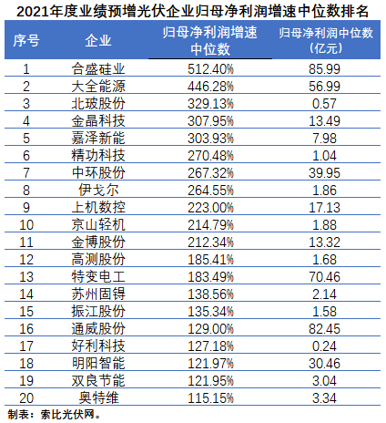 除了這38家企業(yè)以外,其實還有相當多的光伏企業(yè)在2021年經(jīng)營業(yè)績亦呈增長態(tài)勢,只是它們沒有達到業(yè)績預(yù)告的披露標準而已。