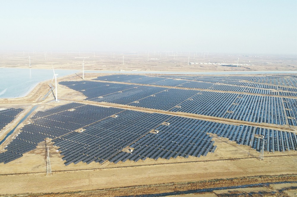 ▲位于山東濱州沾化區(qū)濱海鎮(zhèn)鹽堿灘上的風(fēng)電、光伏項(xiàng)目。CFP/圖