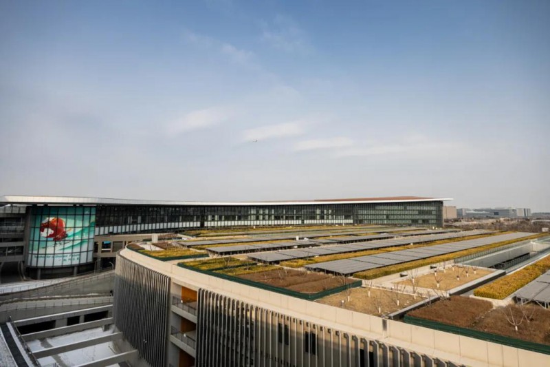 大興機(jī)場(chǎng)充分利用當(dāng)?shù)啬茉捶A賦,通過(guò)地源熱泵、光伏發(fā)電、污水源熱泵等多種形式實(shí)現(xiàn)規(guī)劃可再生能源占總能耗比例16%以上。建成全球在機(jī)場(chǎng)領(lǐng)域最大的多能互補(bǔ)耦合式地源熱泵系統(tǒng),供能面積達(dá)到257萬(wàn)平米。在停車(chē)樓、貨運(yùn)區(qū)及飛行區(qū)側(cè)向跑道旁等區(qū)域建設(shè)太陽(yáng)能光伏系統(tǒng),總裝機(jī)容量約7MW(兆瓦)。