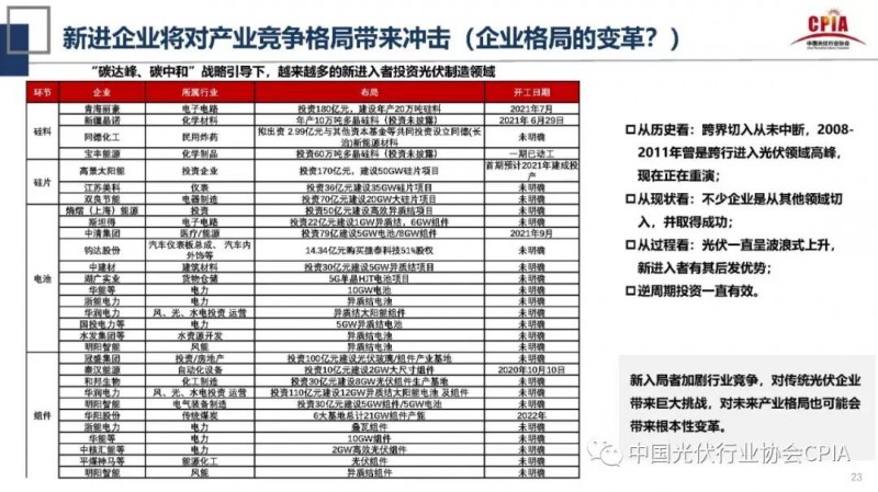 這些企業(yè)的進入,無疑加劇了光伏行業(yè)競爭,給傳統(tǒng)光伏企業(yè)帶來了巨大挑戰(zhàn),也有可能會給未來的光伏產(chǎn)業(yè)格局帶來根本性變革。