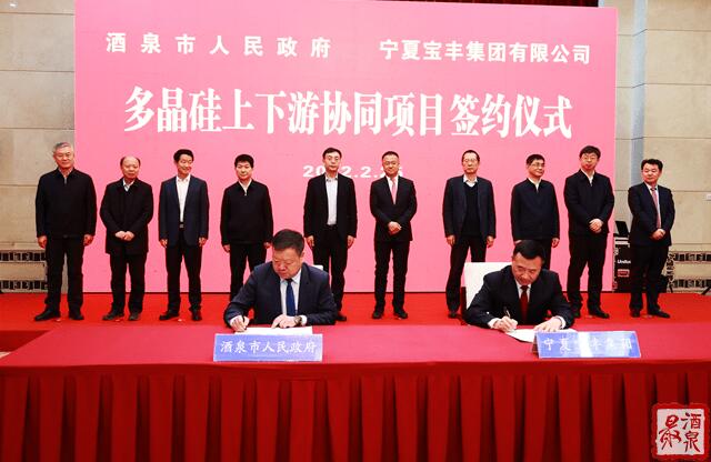 為積極響應國家“碳中和、碳達峰”重大戰(zhàn)略,搶抓政策機遇和發(fā)展紅利,2月25日下午,酒泉市與寧夏寶豐集團在蘭州簽訂《多晶硅上下游協(xié)同項目投資合作協(xié)議》。