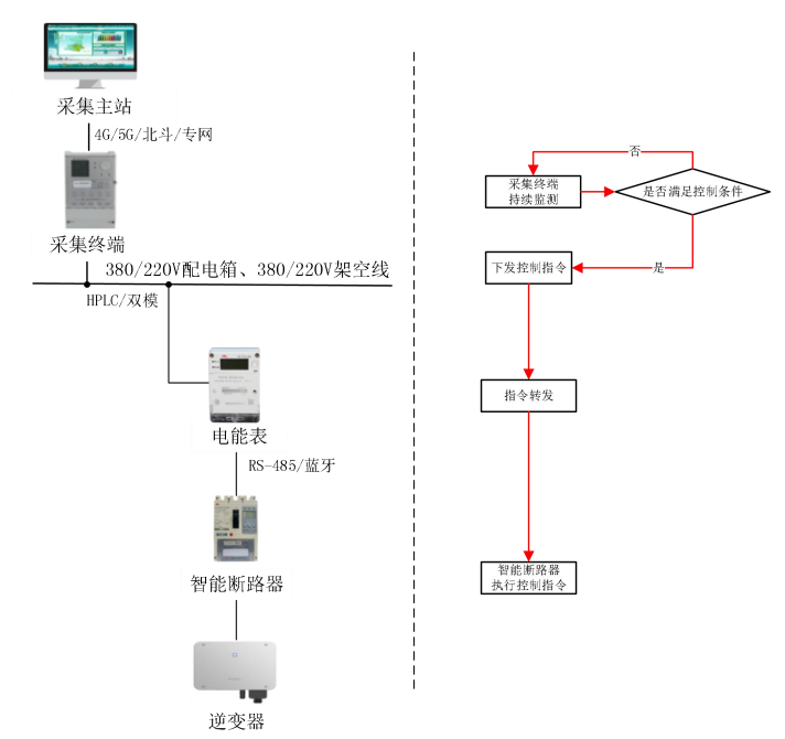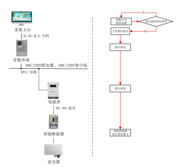 要實(shí)現(xiàn)上述目標(biāo),低壓分布式光伏計(jì)量采集需要安裝的主要設(shè)備包括:采集終端、智能電能表、電流互感器、智能斷路器、防/反孤島保護(hù)裝置等