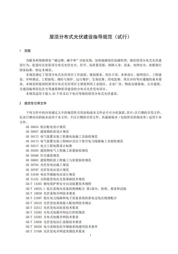 河北省能源局關于印發(fā)《屋頂分布式光伏建設指導規(guī)范(試行)》的通知