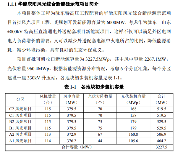 隴東特高壓工程配套新能源華能慶陽風光綜合新能源示范項目:
