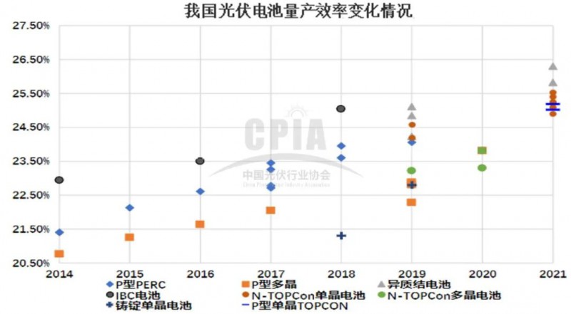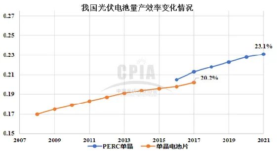 單晶PERC的量產(chǎn)效率從2020年的22.8%上升至2022年的23.1%。