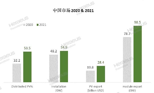 根據(jù)中國(guó)光伏協(xié)會(huì)今年二月份數(shù)據(jù),2021年中國(guó)裝機(jī)量突破了54.9GW, 和2020年相比增長(zhǎng)了13.9%。其中分布式光伏裝機(jī)量首次超過(guò)了50%。