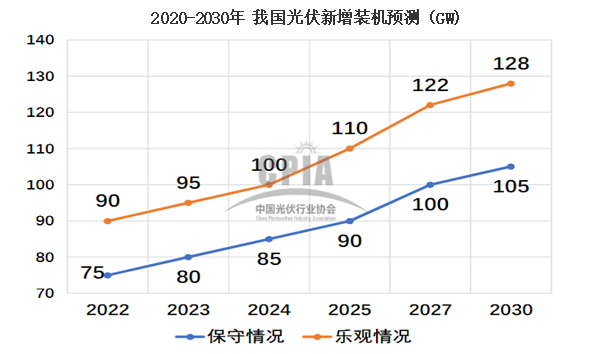 根據(jù)協(xié)會(huì)預(yù)測(cè),中國(guó)2022年的裝機(jī)量將達(dá)到75~90GW。最晚將在2027年沖破100GW。