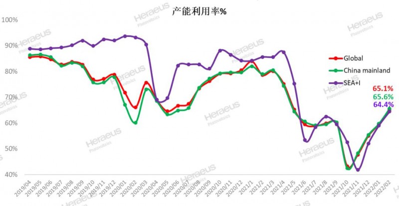 全球光伏開(kāi)機(jī)率較上月持續(xù)改善,今年本月開(kāi)機(jī)率已經(jīng)上升至65%。
