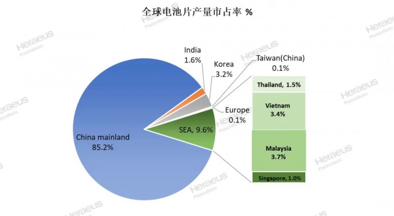 中國(guó)電池片產(chǎn)量已超過(guò)全球總量的85%。