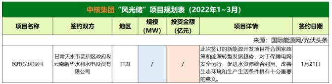 截至2022年3月31日,中核集團共簽約(規(guī)劃)1個風光儲項目,該項目只簽署了合作協(xié)議。