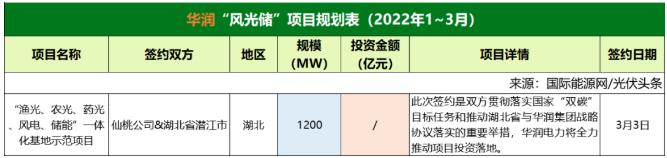 截至2022年3月31日,華潤共簽約(規(guī)劃)1個風光儲項目,項目規(guī)模1.2GW。
