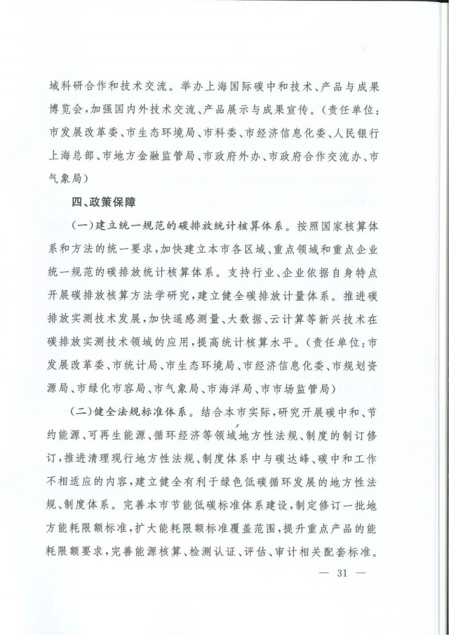 近日,上海市人民政府辦公廳印發(fā)了《上海市碳達峰實施方案》?!斗桨浮访鞔_主要目標:到2025年,單位生產(chǎn)總值二氧化碳排放確保完成國家下達指標。到2030年單位生產(chǎn)總值二氧化碳排放比2005年下降70%,確保2030年前實現(xiàn)碳達峰。并計劃組織實施“碳達峰十大行動”,包括能源綠色低碳轉(zhuǎn)型行動、節(jié)能降碳增效行動、工業(yè)/城鄉(xiāng)建設(shè)/交通領(lǐng)域綠色低碳行動、循環(huán)經(jīng)濟助力降碳行動、綠色低碳科技創(chuàng)新行動、碳匯能力鞏固提升行動、綠色低碳全民行動、綠色低碳區(qū)域行動。
