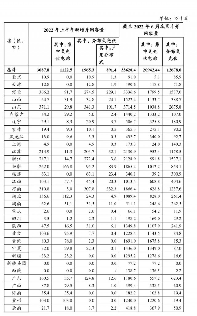 2022年上半年光伏發(fā)電建設(shè)運(yùn)行情況