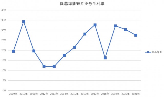 近些年來(lái),盈利能力穩(wěn)定的硅片環(huán)節(jié)被認(rèn)為具有一定的競(jìng)爭(zhēng)壁壘,而電池片環(huán)節(jié)則給人以相對(duì)弱勢(shì)的感覺(jué)。不過(guò),參考隆基綠能硅片業(yè)務(wù)毛利率變化,其實(shí)硅片環(huán)節(jié)亦有顯著的周期性特征,強(qiáng)勢(shì)地位并非堅(jiān)不可摧。