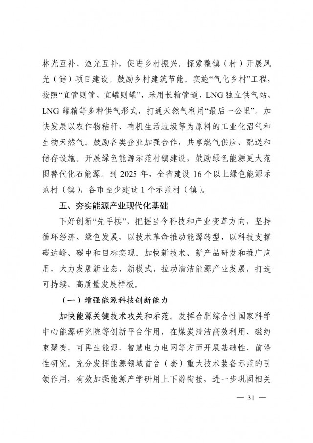實施“光伏+”綜合利用工程促進(jìn)鄉(xiāng)村振興。建設(shè) 16 個以上綠色能源示范村(鎮(zhèn)),各市至少建設(shè) 1 個示范村(鎮(zhèn))。